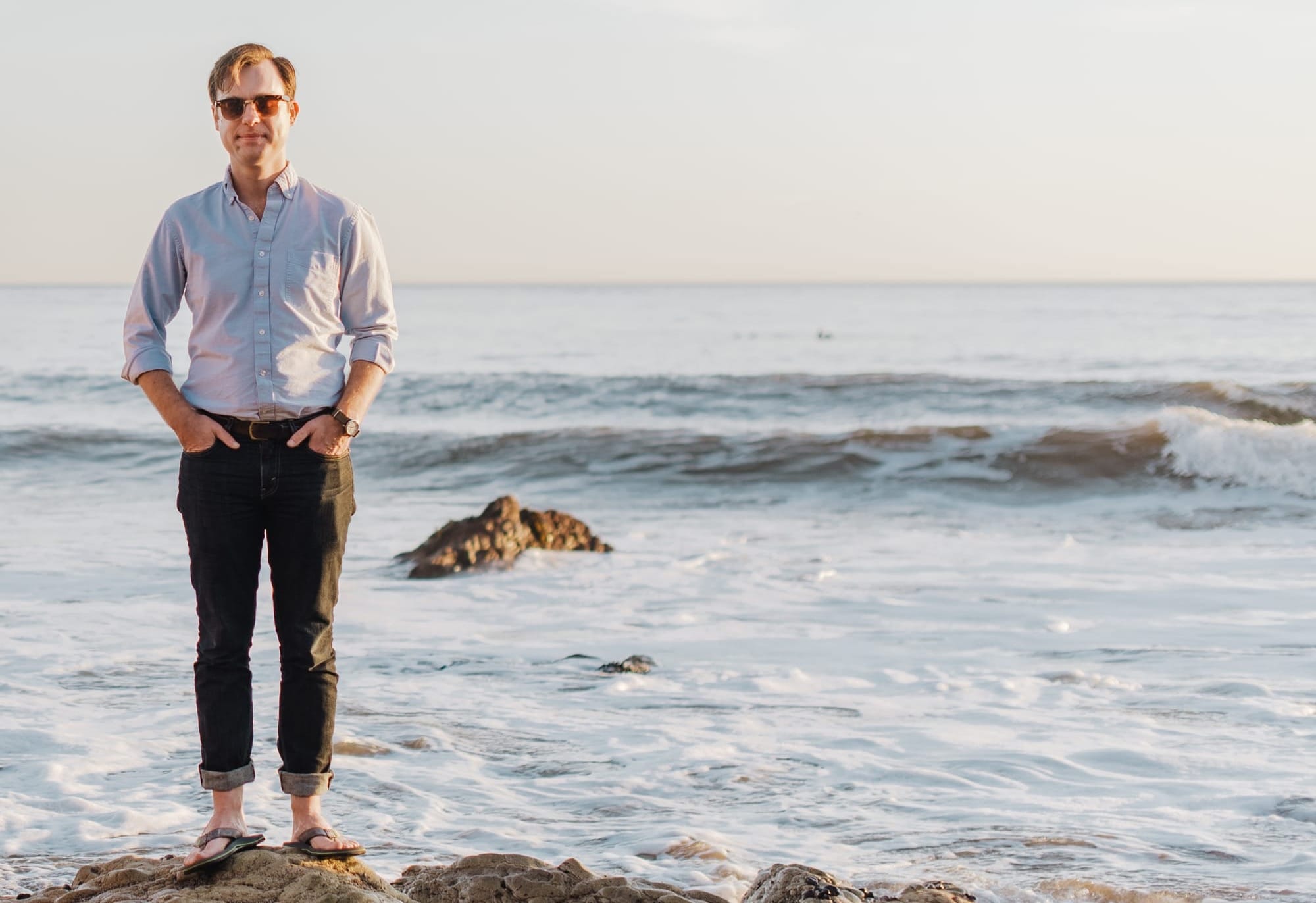 I'm a comedy writer and performer based in Los Angeles. While I don't often stand fully dressed on a rocky beach inches away from the Pacific Ocean, in this particular instance I did.